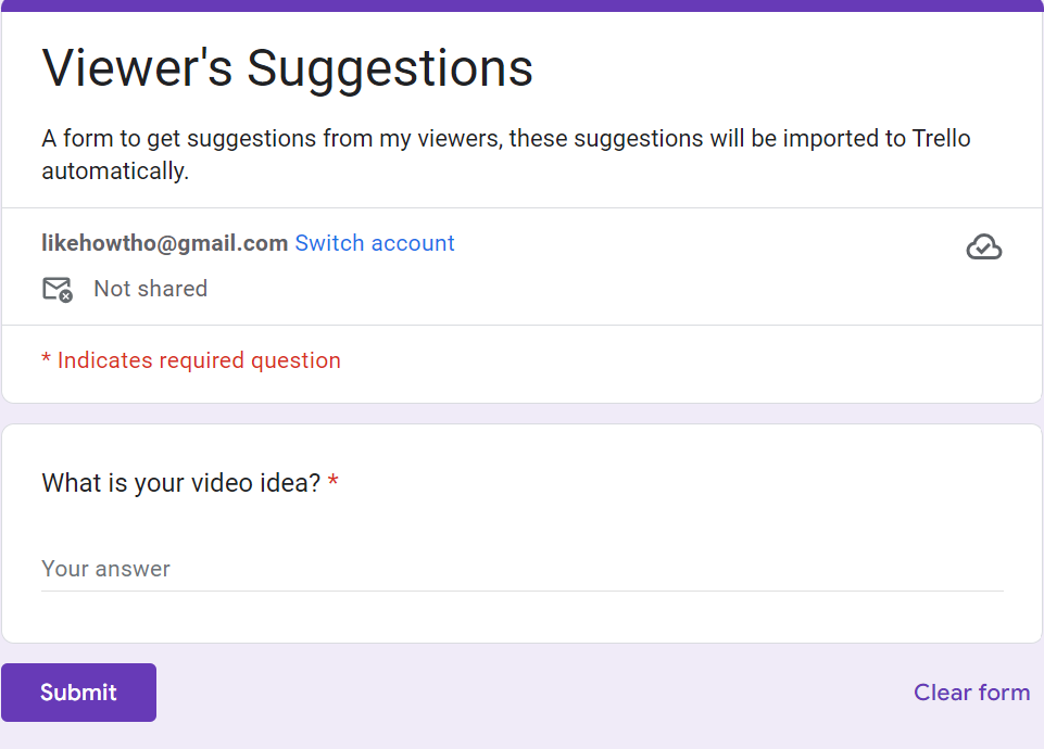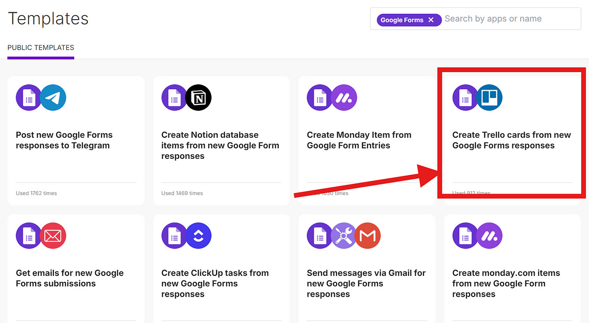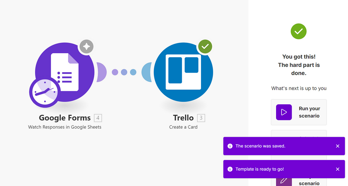 Ensure you have both a Trello board and a Google Form set up beforehand. Here are my examples, they are quite straightforward.