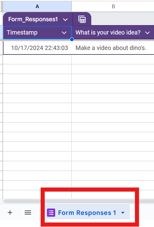 Here you can see I only have one “Sheet” titled “form Responses 1”.