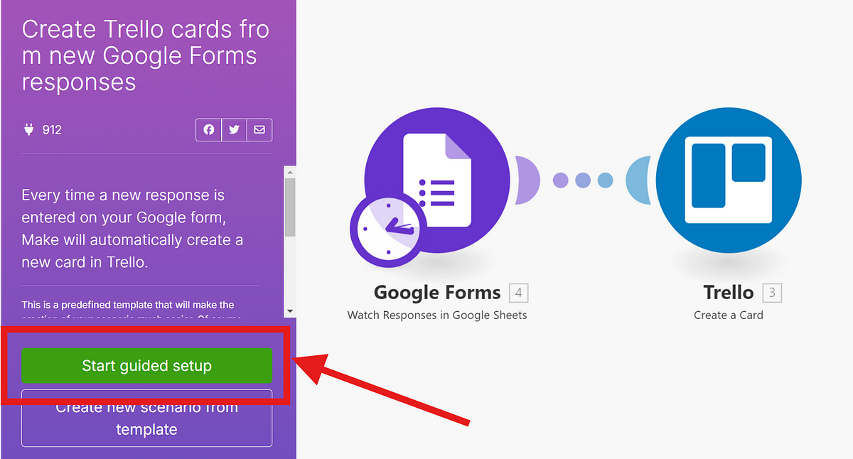 Make.com makes the process easier with a “Guided Setup”. Click on “Start Guided Setup”.