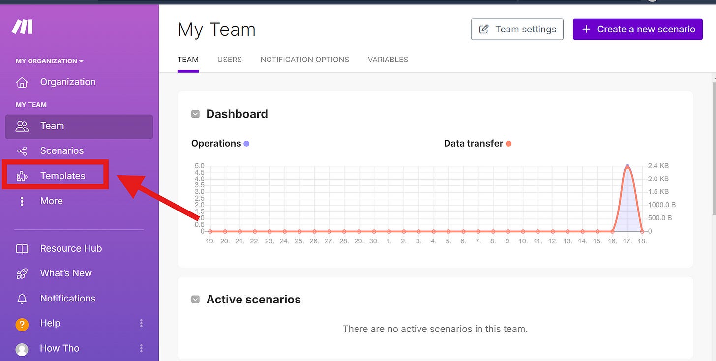 Go to your make.com account and click on templates.